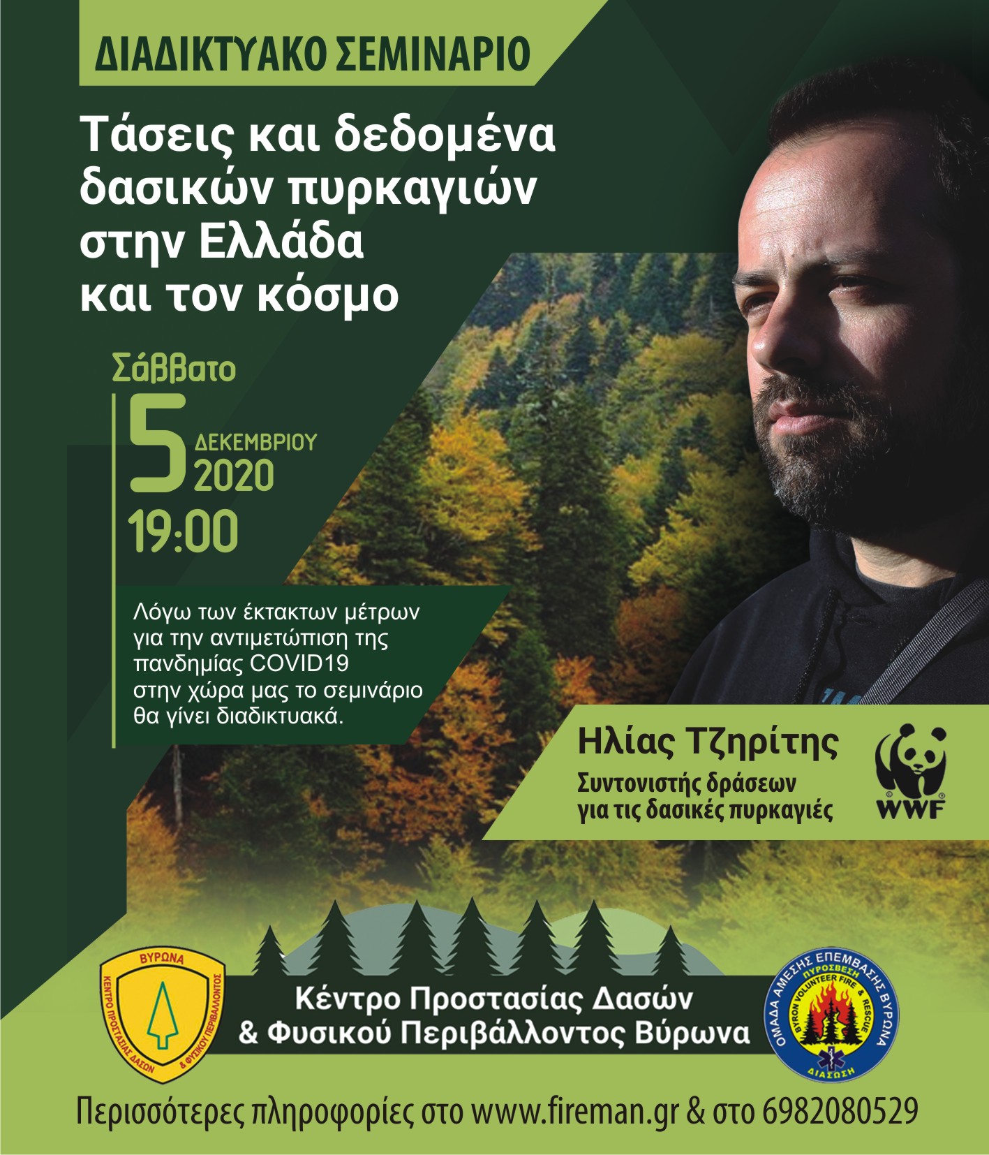 ΔΕΛΤΙΟ ΤΥΠΟΥ 19 Εκπαίδευση 2020-2021 Διαδικτυακή εκπαίδευση Τάσεις και Δεδομένα Δασικών Πυρκαγιών στην Ελλάδα και στον κόσμο. Εισηγητής ο κ. Τζηρίτης Ηλίας