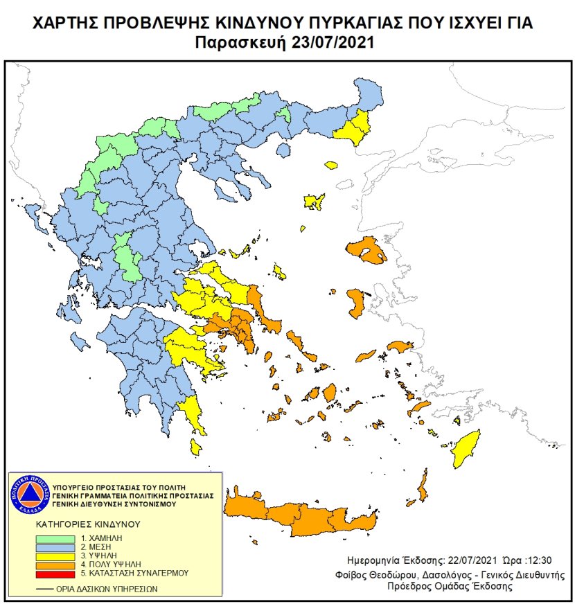 Για την Παρασκευή 23 Ιουλίου 2021, ο κίνδυνος πρόβλεψης πυρκαγιάς για την Αττική είναι 4 Πολύ Υψηλός, σύμφωνα με την Γενική Γραμματεία Πολιτικής Προστασίας.
