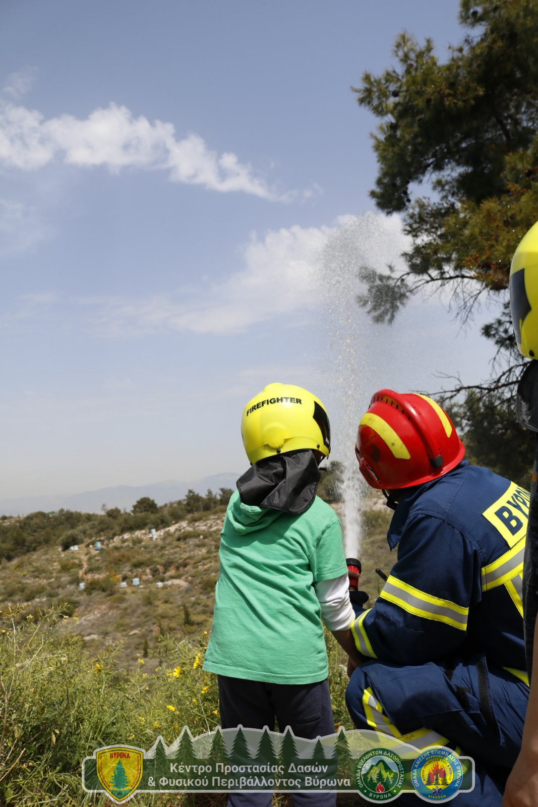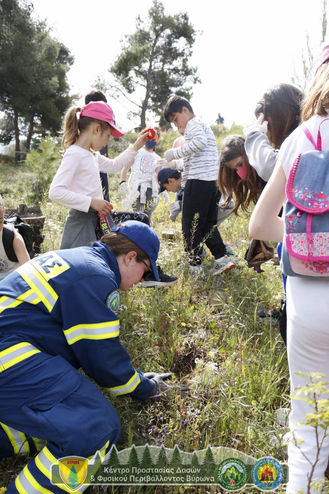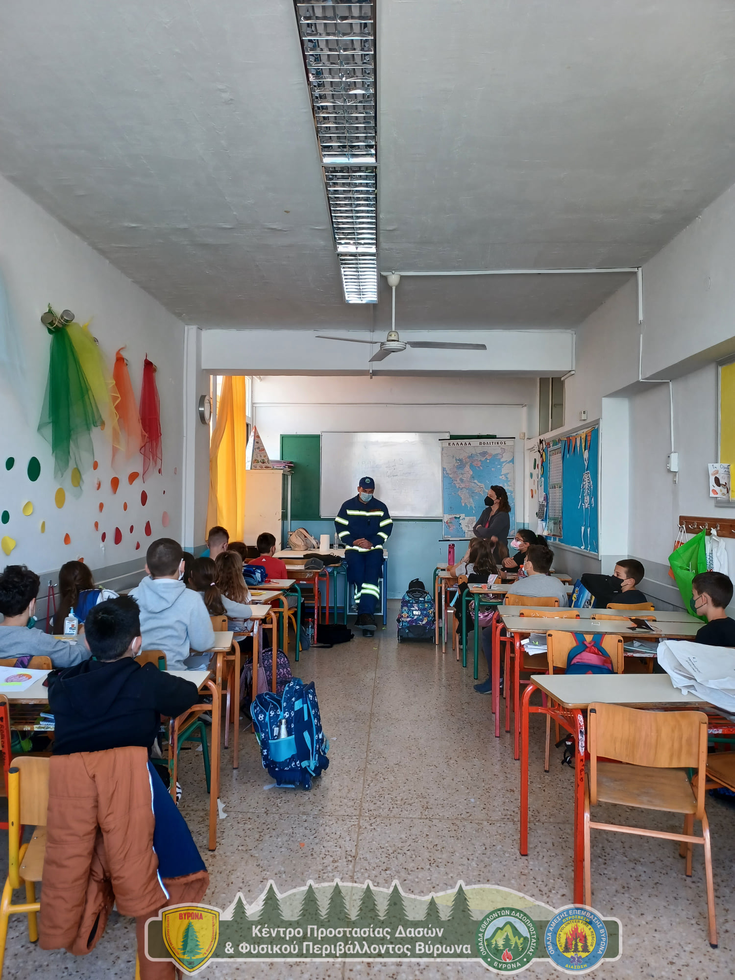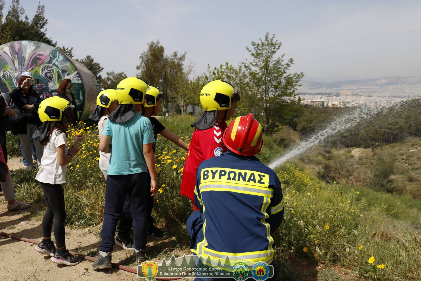Οι εθελοντές του Κέντρο Προστασίας Δασών και Φυσικού Περιβάλλοντος Βύρωνας συνεχίζοντας τις δράσεις για την ευαισθητοποίηση των πολιτών για το περιβάλλον αλλά και την πρόληψη των δασικών πυρκαγιών και ειδικότερα για την προστασία του Υμηττού μας , προχώρησε σε συνεργασία με το 8ο Δημοτικό σχολείο Βύρωνα , το σύλλογο γονέων και κηδεμόνων του 8ου Δημοτικού σχολείου Βύρωνα και τον Δήμο Βύρωνα στην διοργάνωση διήμερης εκπαίδευσης για την ενημέρωση και την πρόληψη των δασικών πυρκαγιών .